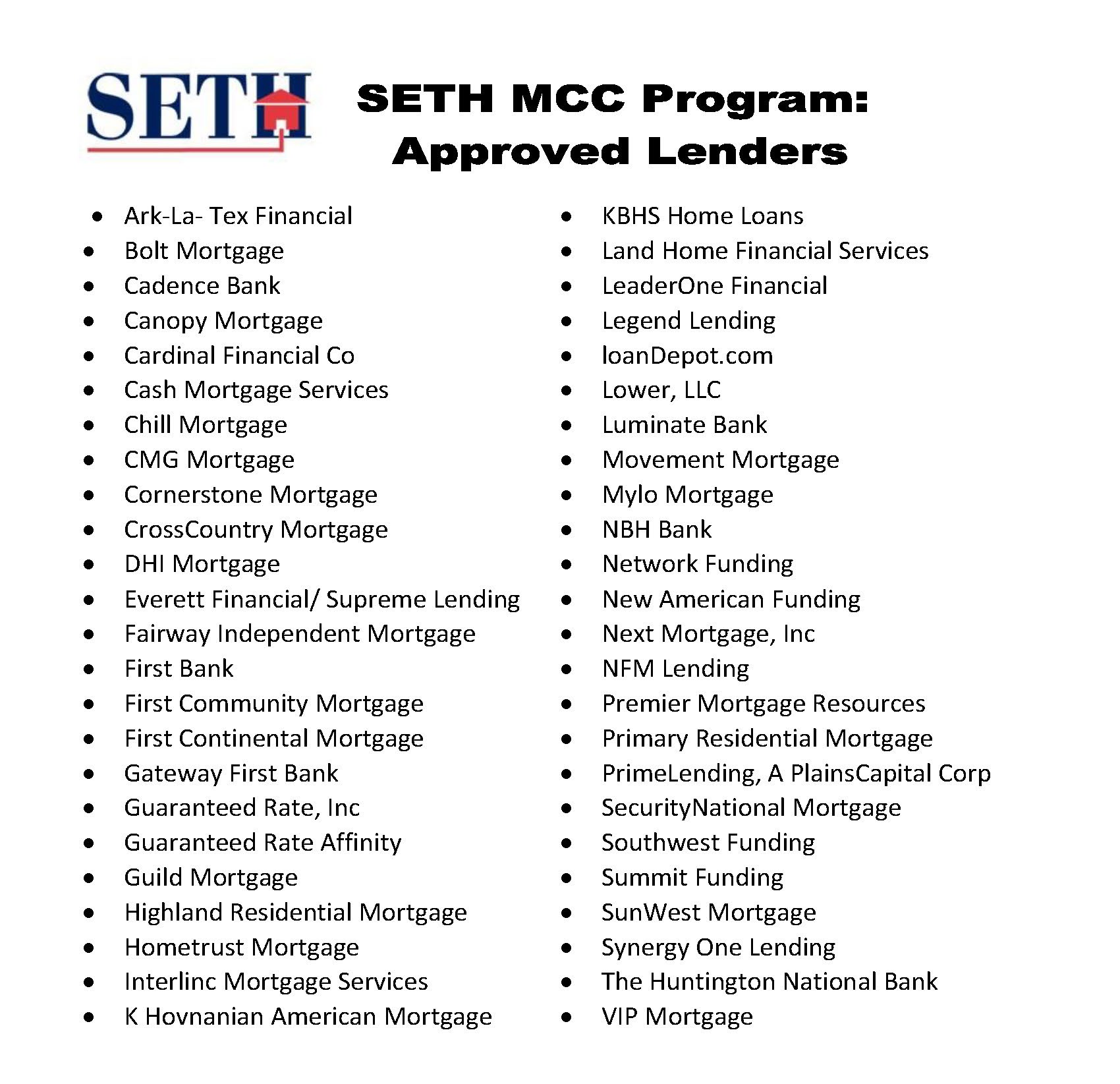 - Obtain mortgage financing from one of our MCC Program Lenders or search our list below.